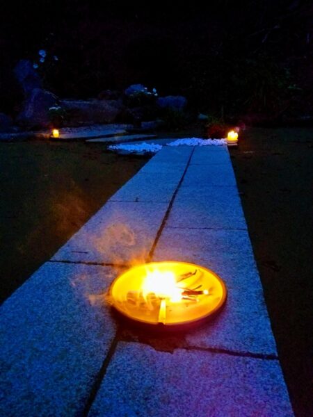 翌年のお盆から、迎え火を焚き御先祖様をお迎え出来る様になりました。法螺貝なんか吹き鳴らし、賑やかだった子供の頃のお盆も、かしこみと蜩と穏やかに過ごしています。