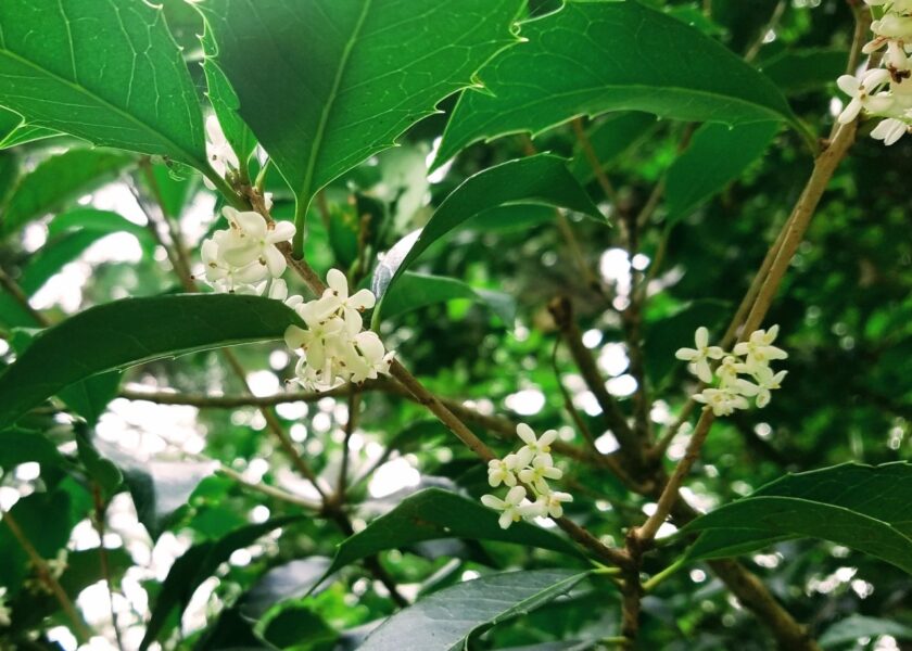 お山を開いて丸9年の秋。初めて柊(ヒイラギ)の花が咲いてくて居るのに気が付きました。