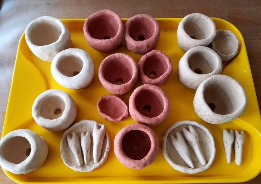 今朝の写真は「ミニ盆栽鉢作り」の皆さんの力作、無事に素焼き完了です。