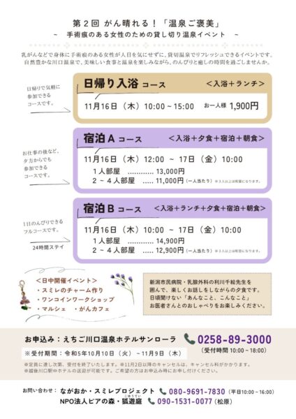 若い頃から秋になると何故か人恋しくて、特に夕方は。人の温もりと温泉、来月の温泉イベントでは前回より、お喋り時間も長~く設定しました。