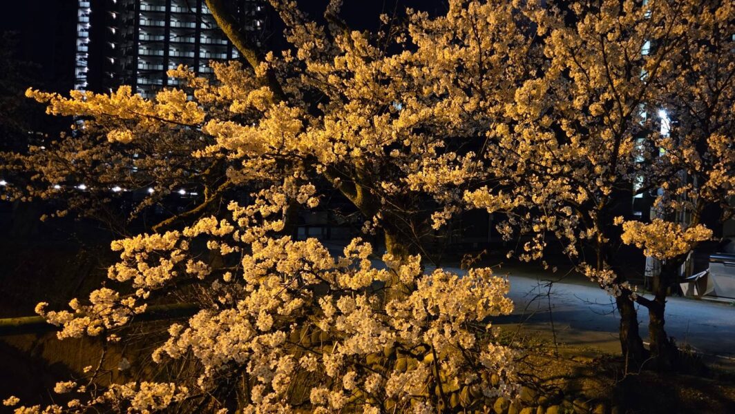写真は夜明前の柿川桜。